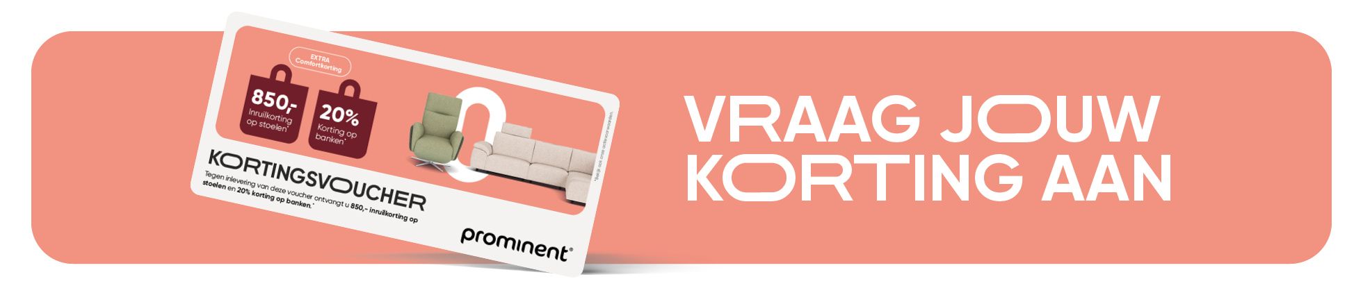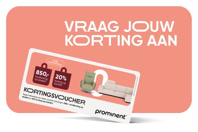 Bij Prominent Vianen hebben we nu tijdelijk 850,- inruilkorting voor jouw nieuwe stoel of 20% korting op jouw nieuwe bank.