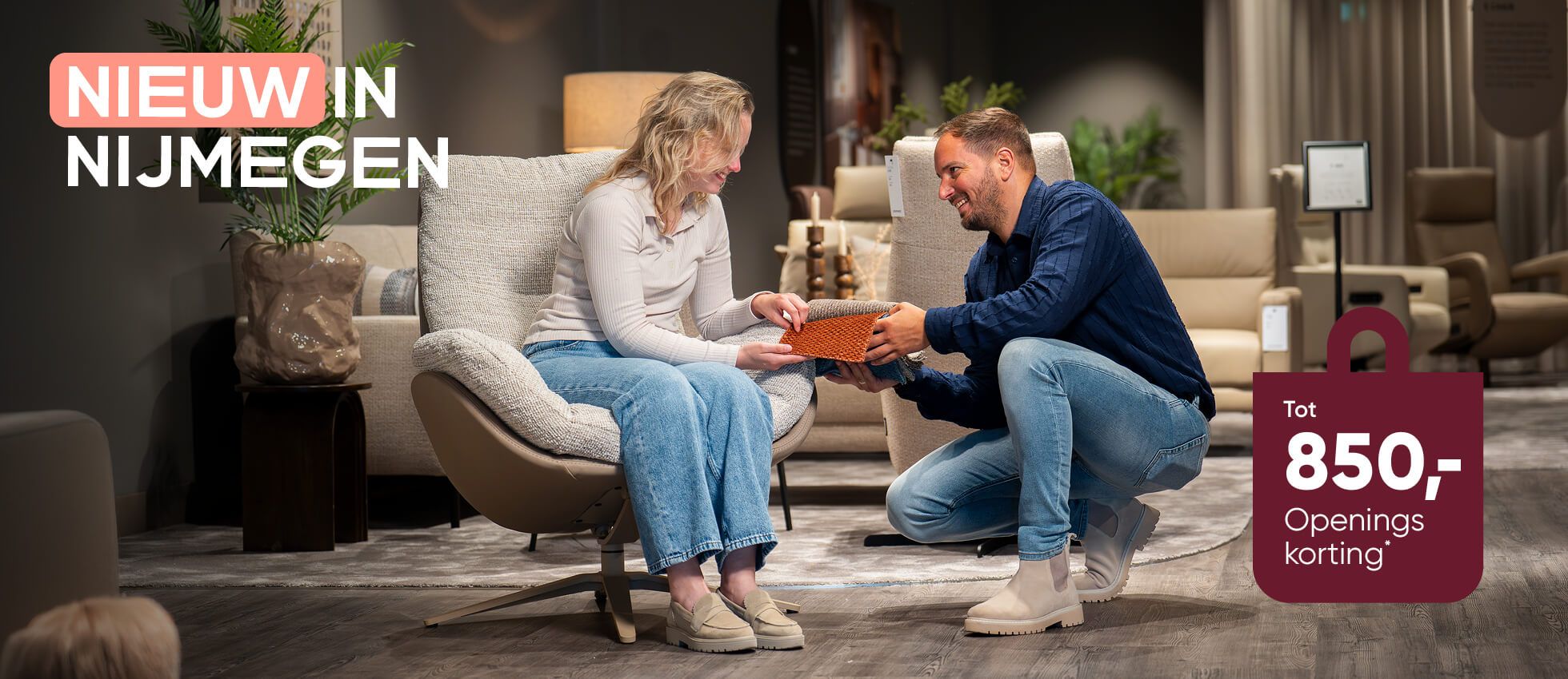 Of je nu kiest voor een royale bank om samen op te ontspannen of een compacte opstelling die perfect past bij jouw ruimte: bij onze meubelwinkel in Nijmegen vind je banken die comfort en stijl moeiteloos combineren. In onze collectie stel je jouw bank volledig naar wens samen, van opstelling en formaat tot stof, kleur en zitgevoel. En wil je jouw zithoek aanvullen met een fauteuil of comfortabele relaxstoel, dan denken onze zitexperts graag met je mee. Stap binnen in ons atelier, voel de materialen, bekijk de kleuren en ontdek hoe banken en stoelen samenkomen tot een interieur dat écht bij jou past.